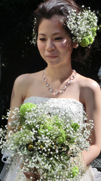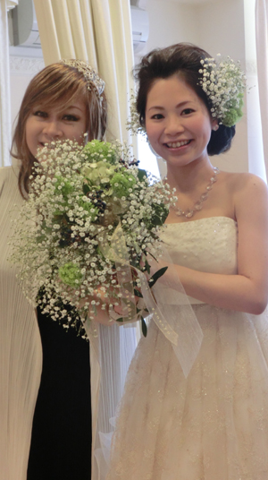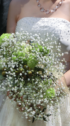 花嫁さんにお渡しする出番待ちの生まれたてのかすみ草です。