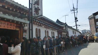 お昼はお約束の参鶏湯です。今回は韓国一有名だという大統領も食べに来るという行列のできるお店です。