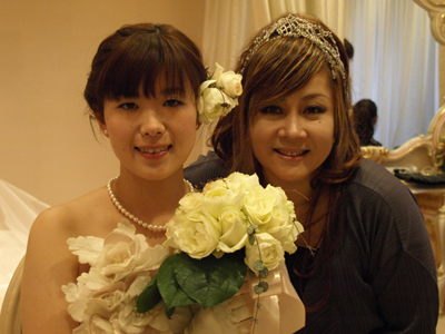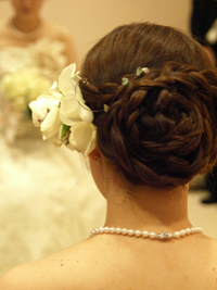 ドレスも髪型もシンプルでそれでいて今風のおしゃれもとりいれています。