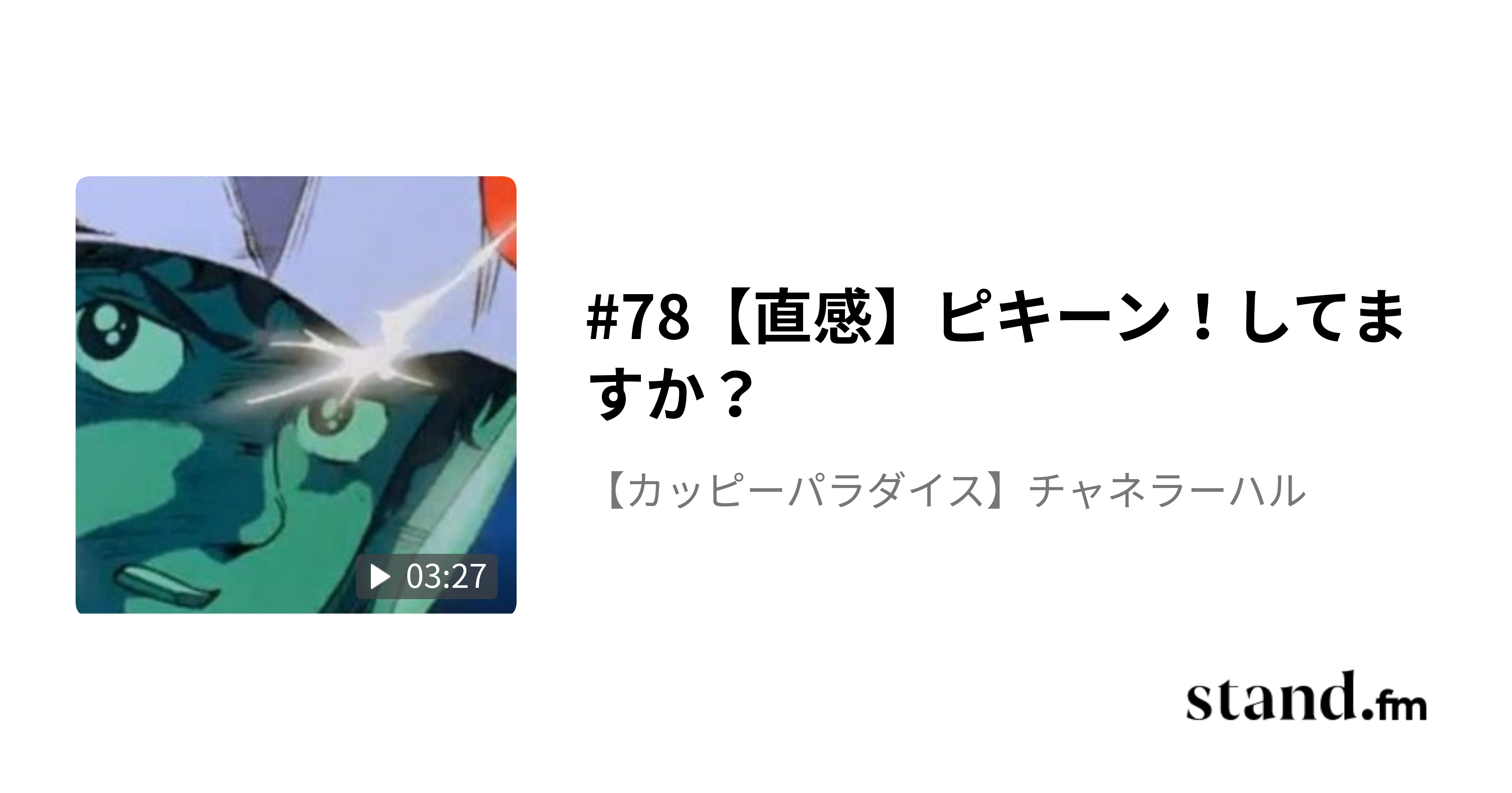 #78【直感】ピキーン!してますか? - 【カッピーパラダイス】チャネラーハル | stand.fm【直感】ピキーン!を感じてますか? 「チャネリング」にも通じること。直感についてのお話 #直感 #ニュータイプ #チャネリング #チャネリングメッセージ #チャネラーハルstand.fm