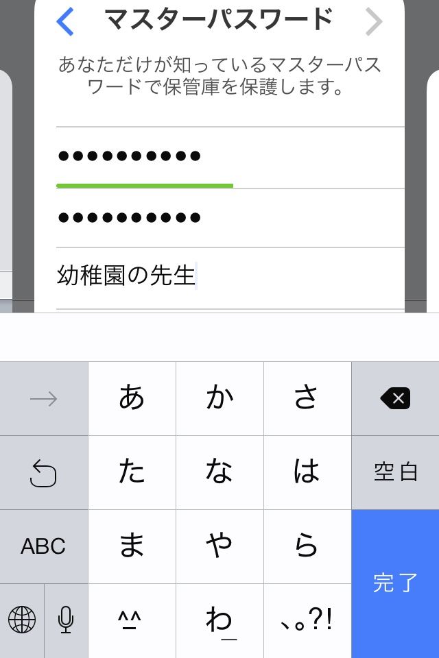 マスターパスワードを忘れたときのために自分にだけわかるヒントを入力します。