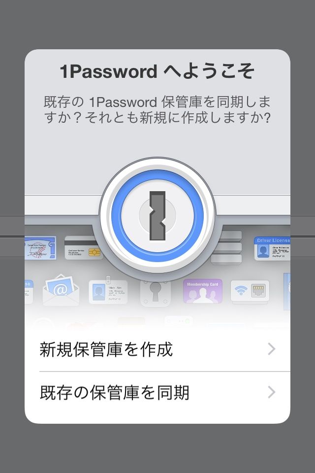 初めて1Passwordを開いたとき、この画面が表示されます。まず、新規保管庫を作成をタップします。