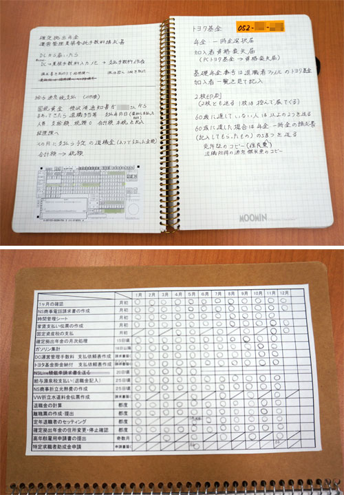 自作の業務手順ノートは丁寧な文字で整然とまとめられていますね。