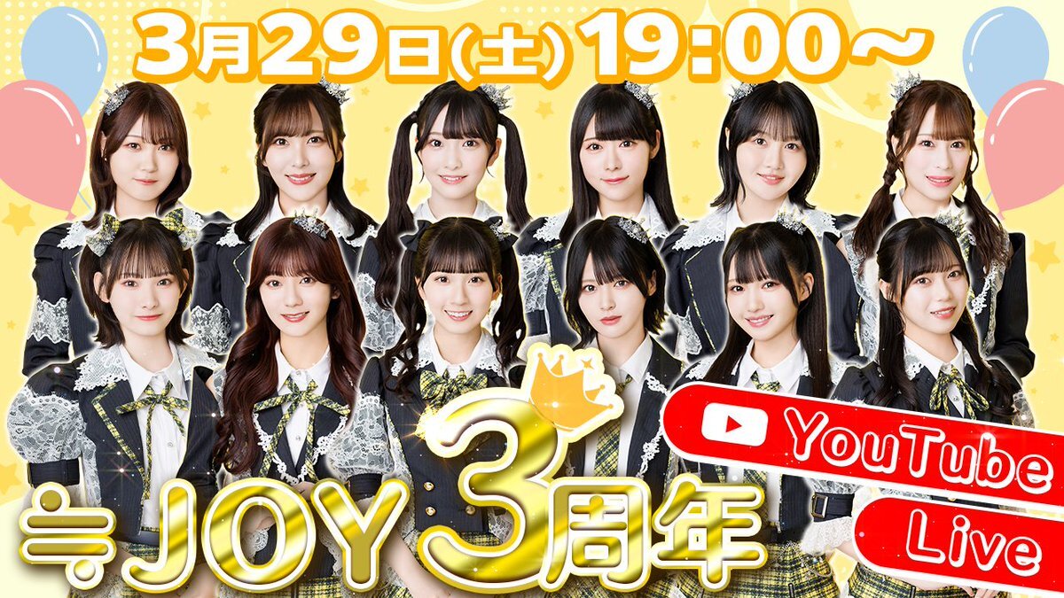 【#ニアジョイメディア情報】 #いこのいじょいch 「祝!ニアジョイ3周年!YouTube Live!」 ≒JOYが生出演いたします👑˖° 配信日:3/29(土)19:00~ 出演:≒JOY どうぞ、お楽しみに🌟!! #ニアジョイ3周年 #ニアジョイ pic.x.com/NOSPehF5tD