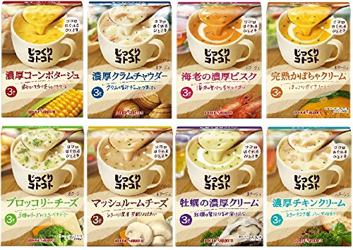 ポッカサッポロ じっくりコトコトスープ 8種アソートパック(濃厚コーン1箱(3食入)、濃厚クラムチャウダー1箱(3食入)、海老の濃厚ビスク1箱(3食入)、完熟かぼちゃクリーム1箱(3食入)、ブロッコリーチーズ1箱(3食入)、マッシュルームチーズ1箱(3食入)、牡蠣の濃厚クリーム1箱(3食入)、濃厚チキンクリーム1箱(3食入)) 計 24食入 Amazon(アマゾン) 1,973円