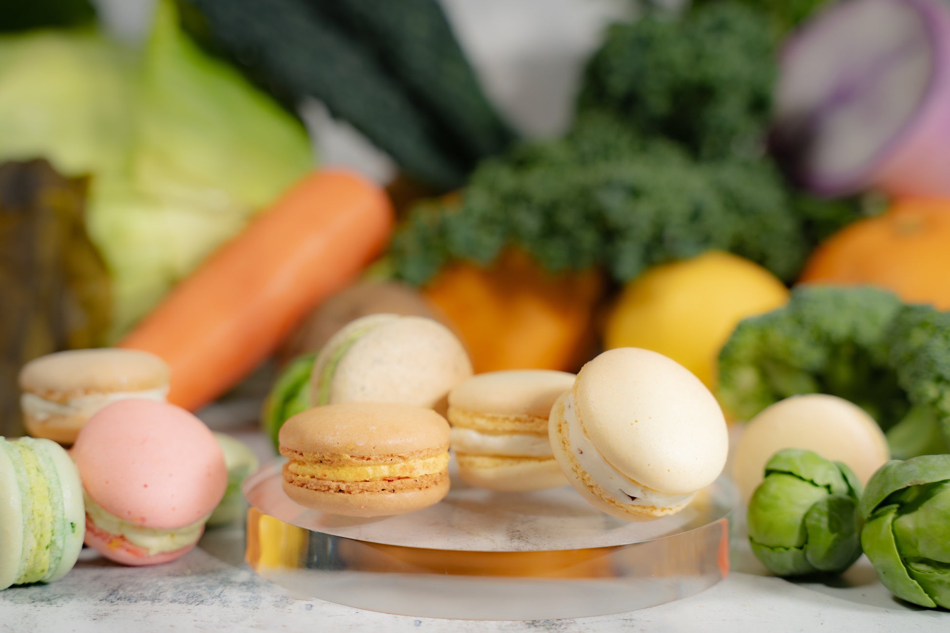 一般的なマカロンと比較し、糖類を通常の約3分の1に抑えることで、野菜本来の旨みが際立ち、自然な柔らかな甘みや風味が生まれます。