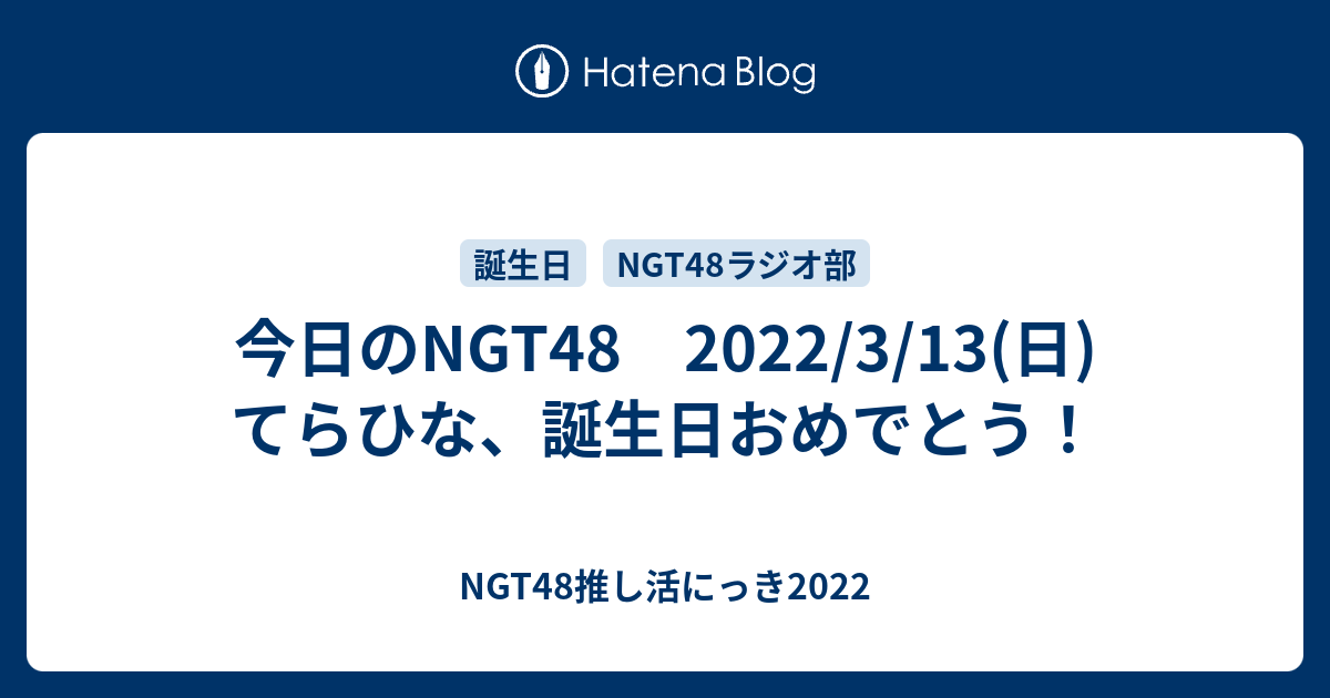 今日のNGT48 2022/3/13 てらひな、誕生日おめでとう! 今日のNGT48 2022/3/13(日) てらひな、誕生日おめでとう! - NGT48推し活にっき2022寺田陽菜 誕生日 「ポンコツな君が好きだ」オンライン個別おしゃべり会 【インターネット配信】 Radiotalk「NGT48ラジオ部 つぐみんのあんみんラジオ」 寺田陽菜 誕生日 いよいよ3月13日に18才を迎える #NGT48 #寺田陽菜 さんのお誕生日の前日となりました⏳明日の当日はご準備させて頂いたお祝いのアイコン㊗️と、以下のハッシュタグをつけたツイ…ngt-tokimusume.hatenablog.com