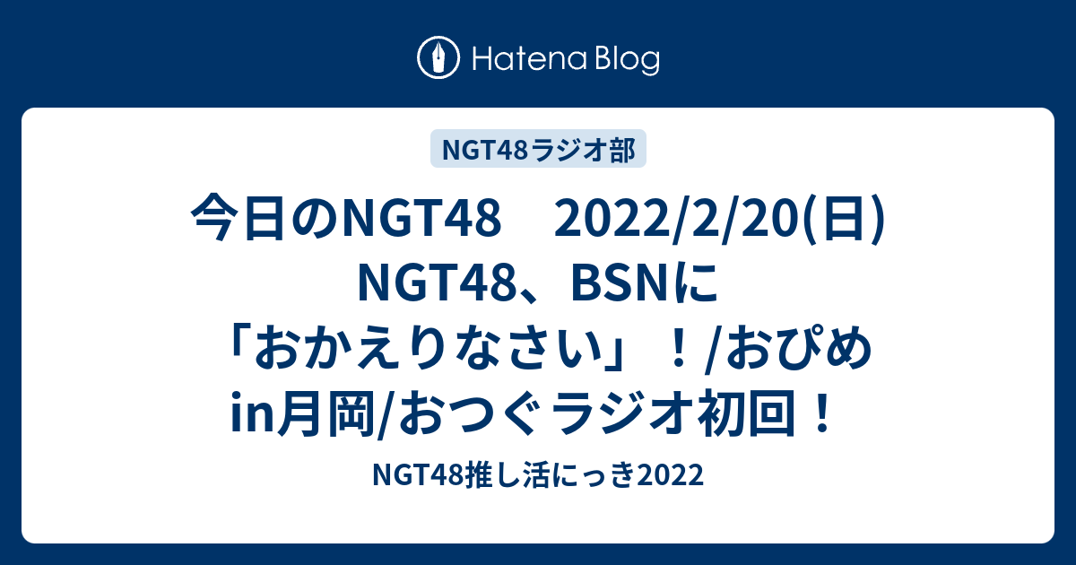 今日のNGT48 2022/2/20(日) NGT48、BSNに「おかえりなさい」!/おぴめin月岡/おつぐラジオ初回! - NGT48推し活にっき2022「ポンコツな君が好きだ」特典 オンライン個別おしゃべり会 ポンコツな君が好きだ 劇場盤CD 第25次申し込み受付 NST公式Youtubeチャンネル 「ガタログです!」 BSNラジオ特別番組「NGT48のWelcome back radio」 Radiotalk「NGT48のラジオ部」 bis 3月号 「ポンコツな君が好きだ」特典 オンライン個別おしゃべり会…ngt-tokimusume.hatenablog.com