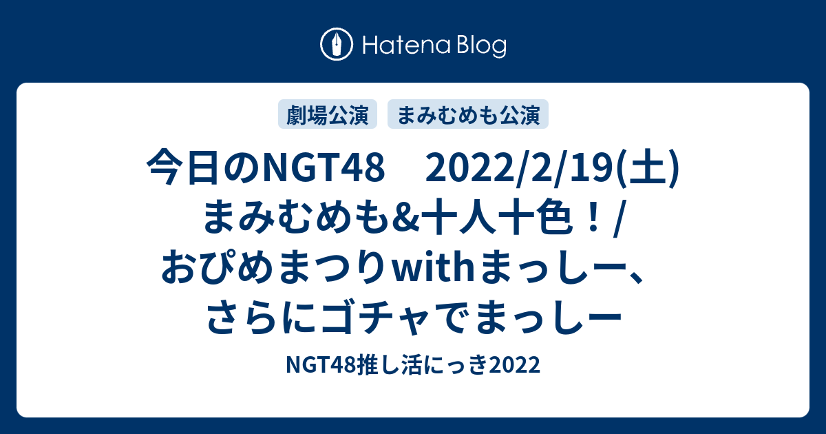 今日のNGT48 2022/2/19(土) まみむめも&十人十色!/おぴめまつりwithまっしー、さらにゴチャでまっしー - NGT48推し活にっき2022劇場公演 まみむめも公演 & 十人十色公演 「ポンコツな君が好きだ」特典 オンライン個別おしゃべり会 ポンコツな君が好きだ 劇場盤CD 第25次申し込み受付 NGT48オンラインショップ 新商品予約販売 BSNラジオ「ひなたまつり」 NCT「ひなたまつりウォッチング」 MBSラジオ「オレたちゴチャ・まぜっ!~集まれヤンヤン~」 Youtube「中井りか 公式…ngt-tokimusume.hatenablog.com