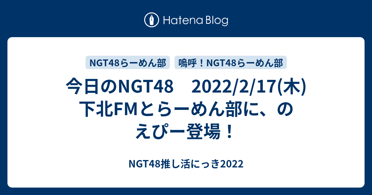 今日のNGT48 2022/2/17 下北FMとらーめん部に、のえぴー登場! 今日のNGT48 2022/2/17(木) 下北FMとらーめん部に、のえぴー登場! - NGT48推し活にっき2022ポンコツな君が好きだ オンライン個別おしゃべり会(本間日陽) ポンコツな君が好きだ 劇場盤CD 第24次申し込み受付 TeNY「嗚呼!NGT48らーめん部」 下北FM「DJ Tomoaki's Radio Show!」 Komachi web (2月16日、17日更新) ポンコツな君が好きだ オンライン個別おしゃべり会(本間日陽) entry.ngt48cd…ngt-tokimusume.hatenablog.com
