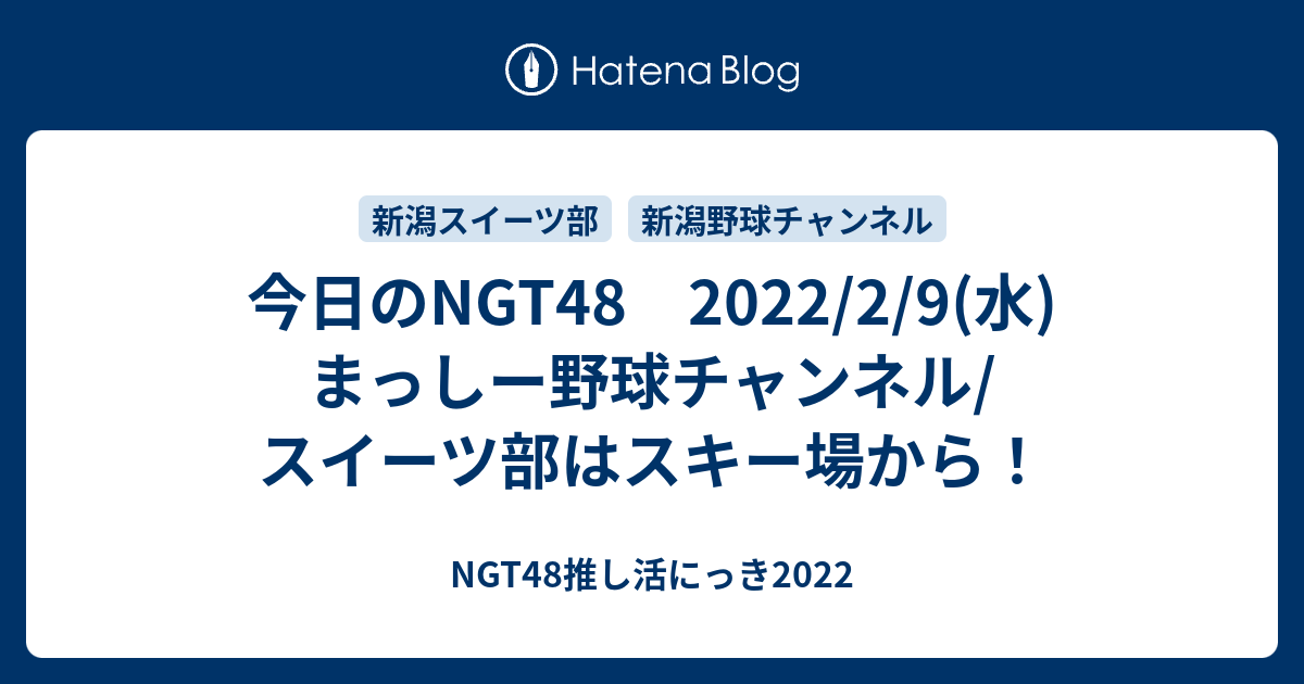 今日のNGT48 2022/2/9 まっしー野球チャンネル/スイーツ部はスキー場から! 今日のNGT48 2022/2/9(水) まっしー野球チャンネル/スイーツ部はスキー場から! - NGT48推し活にっき2022Youtube「新潟野球チャンネル」 BSNアプリ&公式Youtube「NGT48の新潟スイーツ部」 番外編「ロッチ×NGT48のアイドルってなんだ?」公式インスタ初投稿 Youtube「新潟野球チャンネル」 12:00配信 出演:真下華穂 www.youtube.com 先週のベストナインの番外編。マック鈴木氏が考えた、もうひとつのアイデア。 メジャーの話…ngt-tokimusume.hatenablog.com