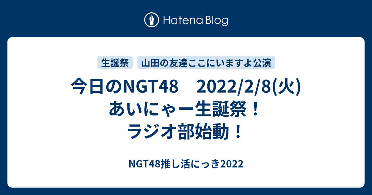 今日のNGT48 2022/2/8(火) あいにゃー生誕祭!ラジオ部始動! - NGT48推し活にっき2022劇場公演 山田の友達ここにいますよ公演 & 十人十色公演 日下部愛菜生誕祭 FM新潟「NGT48のえっさこいさRADIO」AuDee配信 音声配信サービス Radiotalk 新番組「NGT48ラジオ部」 Youtube「はるか村公式チャンネル」 チューリップテレビ「きとキュン♡トラベラー with T」 劇場公演 山田の友達ここにいますよ公演 & 十人十色…ngt-tokimusume.hatenablog.com