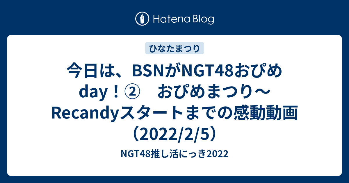 今日は、BSNがNGT48おぴめday!② おぴめまつり~Recandyスタートまでの感動動画 今日は、BSNがNGT48おぴめday!② おぴめまつり~Recandyスタートまでの感動動画(2022/2/5) - NGT48推し活にっき2022ngt-tokimusume.hatenablog.com BSNラジオ「ひなたまつり」(18:00~18:30) BSNアプリ「ひなたまつり反省会」(18:30更新) NCT「ひなたまつりウォッチング」(23:00~) 中井りか公式チャンネル(20:00更新) BSNラジオ「ひなたまつり」(18:00~18:30) BSNアプリ「ひなたまつり反省会」(18…ngt-tokimusume.hatenablog.com