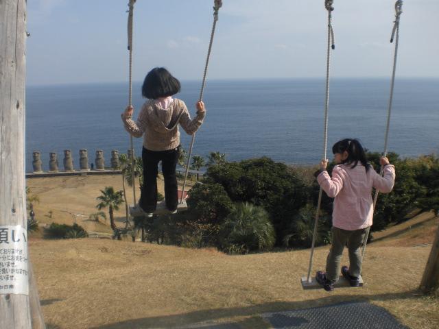 手を離したらどこまでも飛んでいきそうなちょっと怖いブランコで遊ぶ嫁と娘(笑)