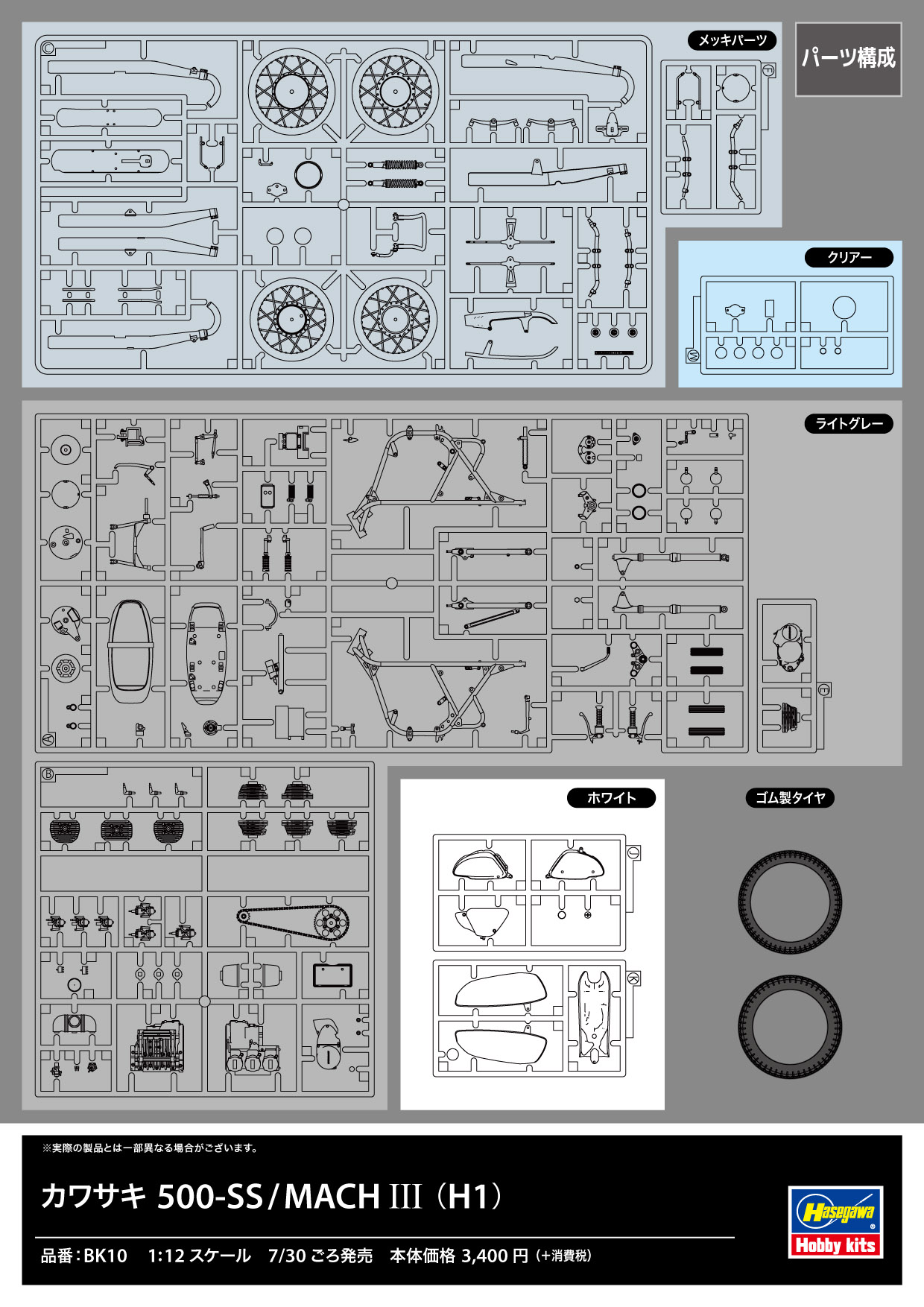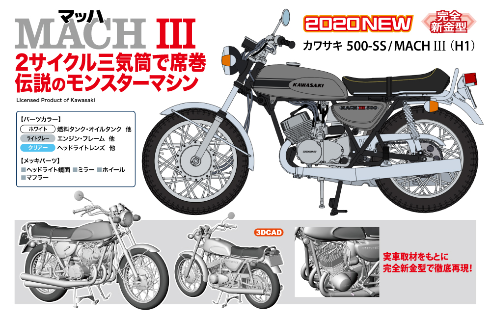 キットは1969年9月に日本国内発売されたカワサキ 500-SS/MACH III(H1)を、