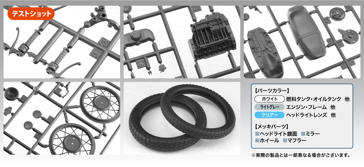 タンクのパーツカラーはホワイト、ヘッドライト鏡面・ミラーがシルバーメッキパーツです。