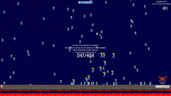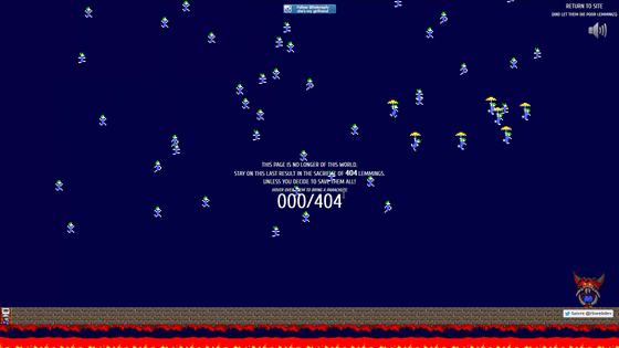 ネットサーフィンをしていると「404 Not Found」というページが表示されることがあります。これは目的のページが見つからなかった際に表示されるページなのですが、このエラーページをセンスあふれるおしゃれなページに仕上げてしまう猛者もいます。フランス人ウェブデベロッパーのBrasierさんも奇抜な404ページ製作者の1人で、彼が作った404ページに飛ぶと、404匹のレミングスが天空より舞い降りてきます。