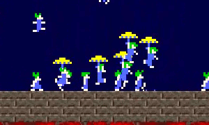 少しでも多くの命を救うために懸命にマウスを動かしますが、あまり速く動かしすぎるとレミングスの傘が開かないので注意。