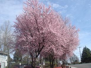 バス停からの帰り道、あったかくなってきたシアトルで梅の花が咲いていました