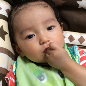 5m18d すごい成長(バンボ、寝返り返り、足を舐める)