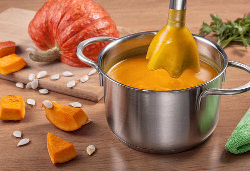 ポタージュにする場合、皮は果肉とかたさがことなるため口当たりが悪くなる原因ともなる。また、かぼちゃの果肉のオレンジ色と皮の緑色を一緒に裁断するとスープの色が黒っぽく仕上がってしまうため、ゆであがったあとは必ず皮をとる。