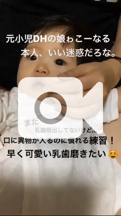 ハブラシに慣れさせるためと早めにハブラシを渡すこともありますが、ハブラシの事故は大変危険なため、本人に渡すモノは安全なモノor