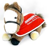 首を少しかしげた、手乗りな馬のぬいぐるみ。