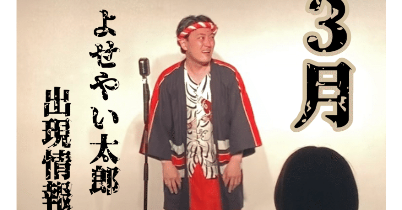 3月 よせやい太郎の出現情報|よせやい太郎3月 よせやい太郎の出現情報 ▼ーーー3月のライブまとめーーー▼ 06(金)「ネタネタスプラッシュ52」池袋18:30 07(土)「ゲレロンステージ」西新宿19:00 15(日)「肉食ライブ2部」新宿バッシュ19:00 17(火)「クッキージョー」新宿ブリーカー19:15 22(日)「パワーオブフリー」新宿V1 19:30 29(日)「肉食ライブ2部…note.com
