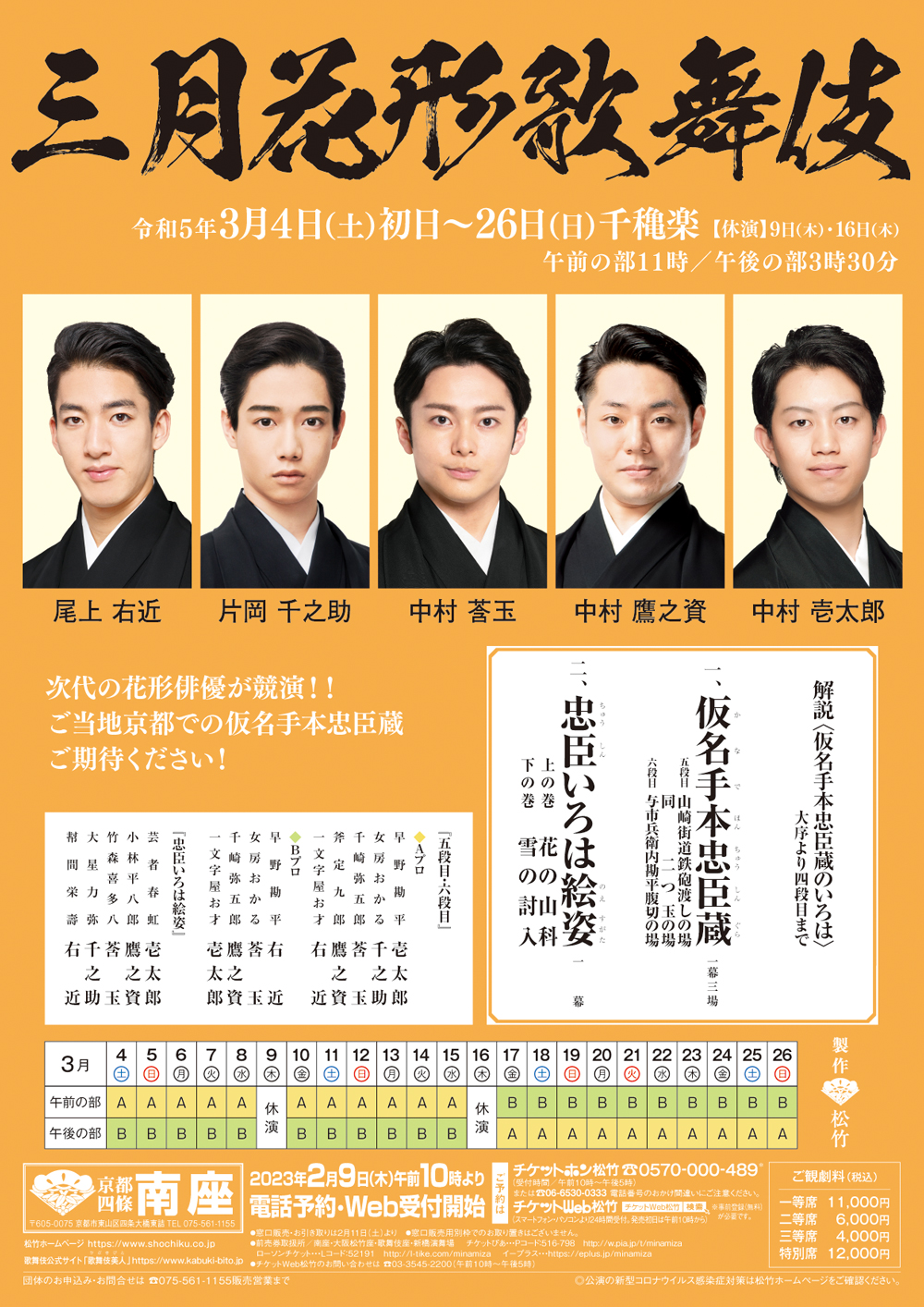 ・(京都)南座 3月4日(土)-26日(日)「三月花形歌舞伎」