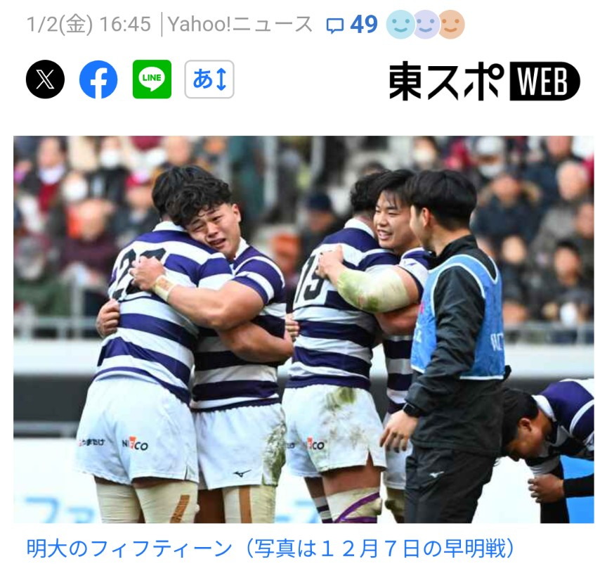 2日。あいつは箱根駅伝を見たかったようだけど、うちではこの日は学生ラグビー大会を必ず見ていて。