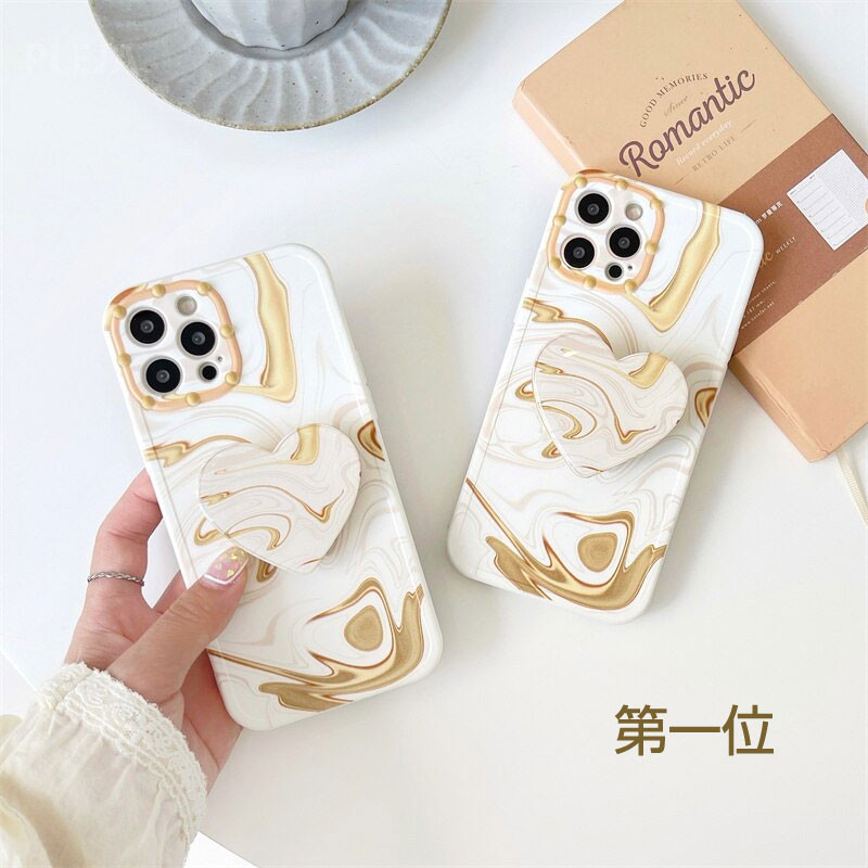 【iphone12対応】 おしゃれ マーブル 模様 ハート型 スタンドホルダー 耐衝撃 カメラレンズ 保護 iphone ソフトケース ブラウン