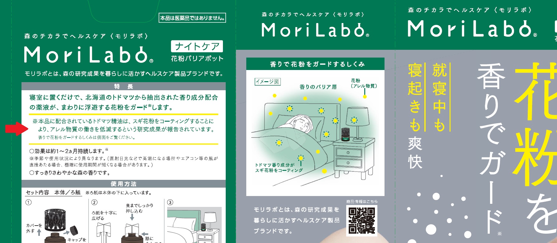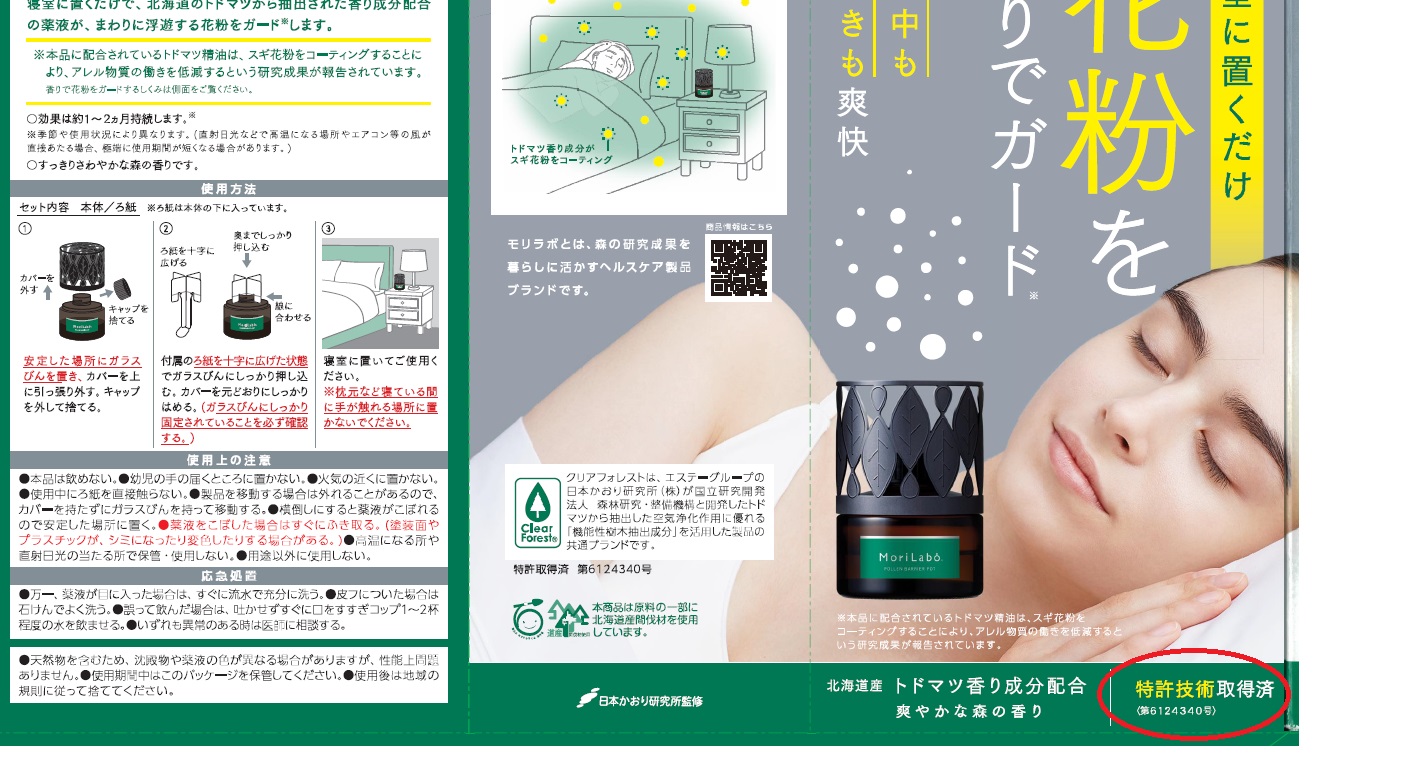 商品MoriLaboの訴求「花粉を香りでガード」