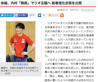 内村選手が五輪に向けて掲げたテーマは