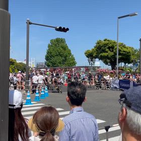 バラ満開の山下公園でトライアスロン観戦