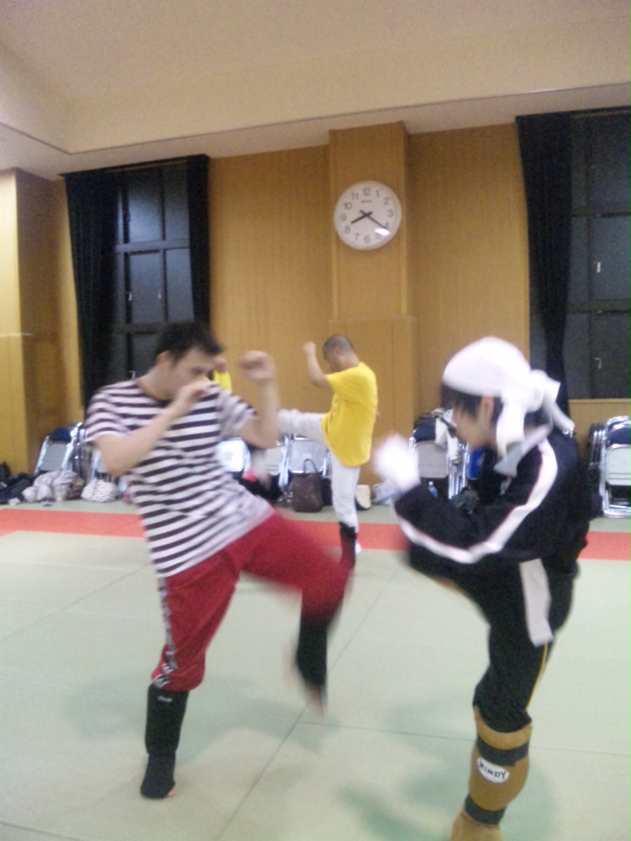 シャドーと移動練習をみっちりやって、今日はパンチと蹴りの防御を練習。