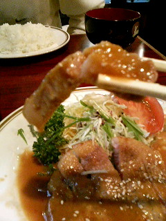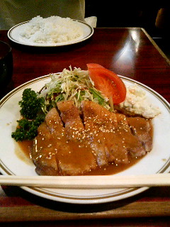 いつもはポークソテー(デミソース)なんですが、今日はポークソテー(ミソソース)。
