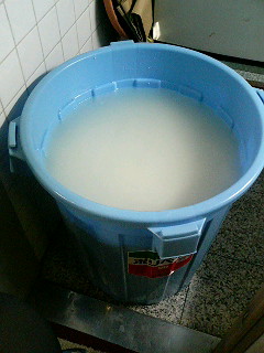 毎年恒例!もちつき忘年会~準備①~昨日の夜から23日に行われる『シーザージムもちつき忘年会』の準備です。まずもち米研ぎです。この袋が3袋も!!あー腰が痛えー!2時間半かかって終わりました…。この巨大なポリバケツがもうひとつ…。首・腰・膝が早くも悲鳴を上げています(ToT)