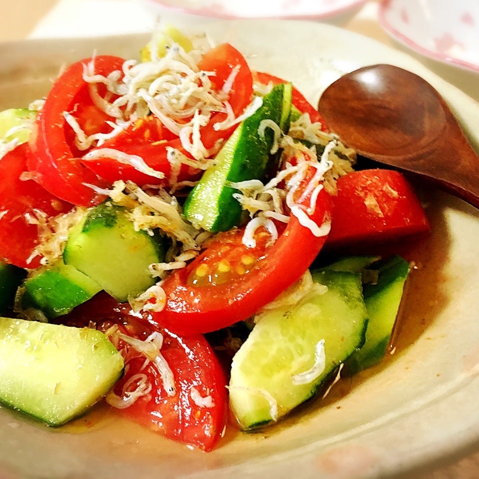 余ったしらすをドレッシングに加えて「5分で作れる♪胡瓜とトマトのしらす和えサラダ」を作りました。暑い夏は水分の多い旬の野菜とお酢を加えたさっぱりドレッシングが好相性♡