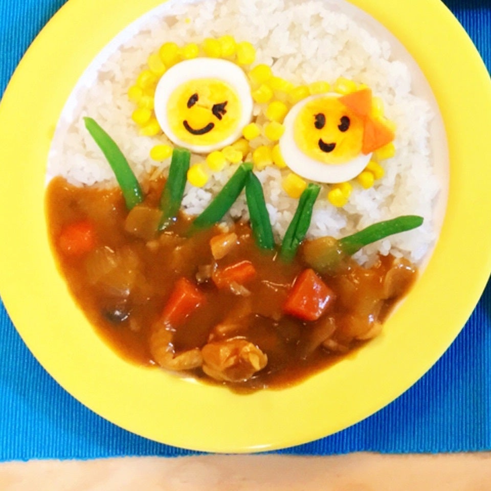 久々デコカレー登場!手早く♪かんたん♪ヘルシー♪子どもと可愛くデコって楽しい「ひまわり♡ママ&パパ♡」カレーを作りました。