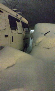 除雪しなくちゃで車行ったら、隣のハイエース近い(゜o゜;;