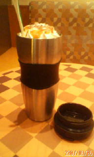 タンブラー購入すると、好きな飲み物が一杯ついてくる。エスプレッソなんかの追加も含まれてるから、豪華にエスプレッソとホイップ追加しちゃった!