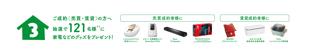 - 期間中に、ご来店・ご成約・専任媒介契約ご締結で