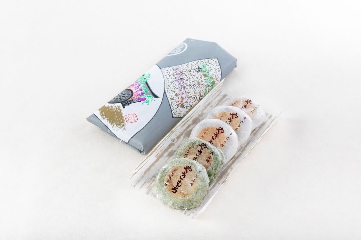 葵家のやきもちは、良質な滋賀県江州米から作った餅で、北海道産小豆で作る自家製つぶ餡を包んだ、京都上賀茂名物でございます。白3個よもぎ2個の計5個でお包みしております。
