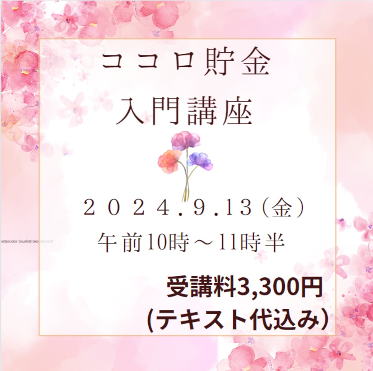 ◆ココロ貯金スピード入門講座(90分の講座です)