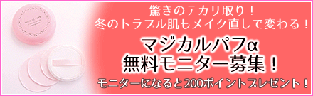 <新着!>【第1弾】驚きのテカリ取り!冬のトラブル肌もメイク直しで変わる!「マジカルパフα」無料モニター募集!