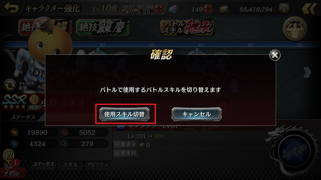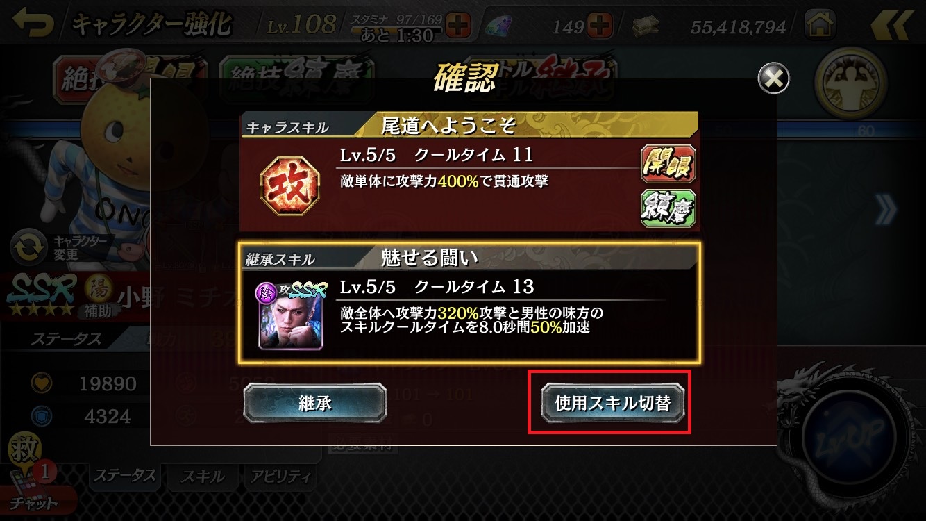 2. Then touch the "使用スキル切替(Switch Skill Used)" button.