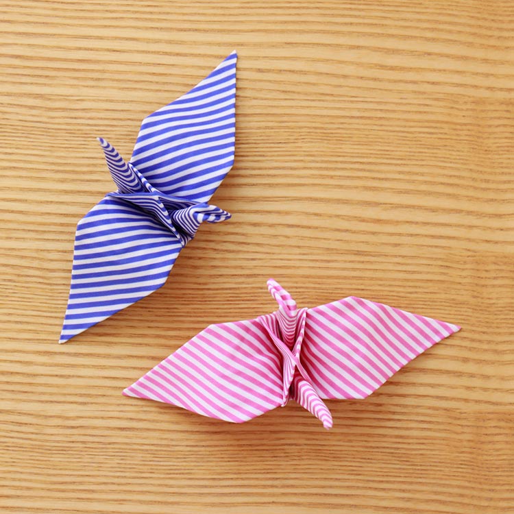 まるで本物の折り紙のように可愛らしく折られた布製のポケットクリーナー。