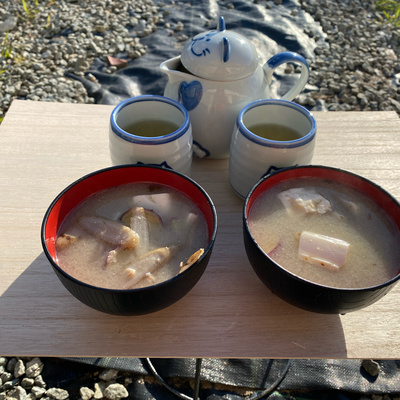 この日は朝味噌がしたくなったので、ちゃちゃっと作って北くんを誘ってお庭へ。