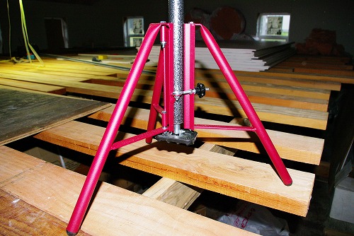 今回は、三脚と幅70cmのノンスリップパッドを使用して石膏ボードを天井に貼り付けました。