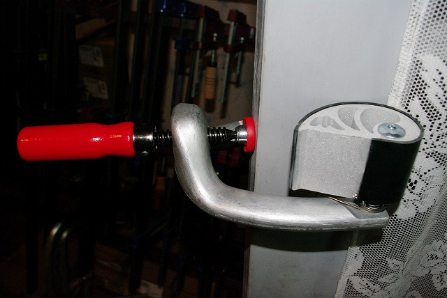このエッジクランプは、写真のような場合で使用します。 室内ドアーに付けて実演しています。